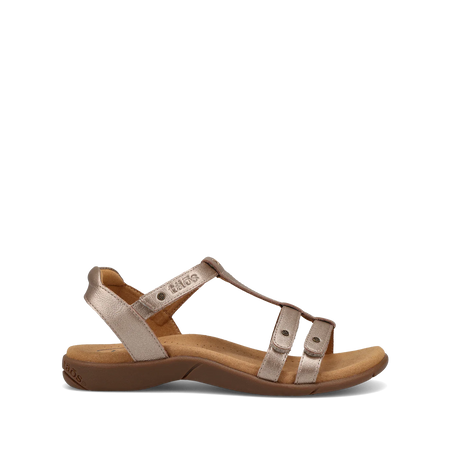 This beautiful, strappy leather sandal is bound to be the new trophy in your wardrobe. The fully adjustable straps help accommodate different widths as well as insteps. Outstanding comfort comes from the Taos Soft Support™ premium footbed with Cool Recovery Foam®. The arch and metatarsal support gives you comfort while alleviating pressure from the ball of the foot.