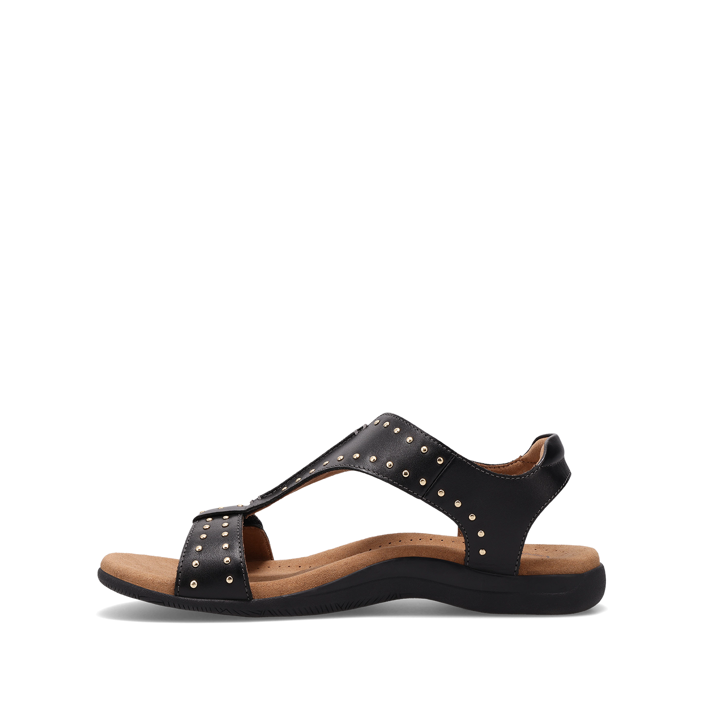 All eyes will be on the new Show Stopper! Gold mini studs add a bit of bling to our patented shield strap design with two adjustable hook and loop straps - making them perfect for sunny day strolls and a chic finishing touch for nights on the town! Enjoy luscious soft leather and an embossed microfiber footbed with an antimicrobial shield that keeps your feet cool and dry. The soft Cool Recovery Foam® padding of our Soft Support™ sandal collection provides maximum shock absorption with flexible and durable rubber outsoles.
