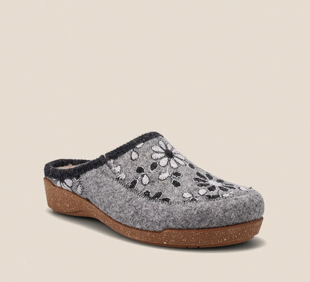 Woolderness 2 is a cozy slide on clog, perfect for cold nights or you can enjoy wearing out into town all day long with an indoor/outdoor rubber outsole. Uppers feature vibrant, hand embroidered Italian wool and faux fur lining that make them irresistible. Taos Curves & Pods® removable footbed and our flexible corked midsole delivers comfort that lasts all day and all night.
